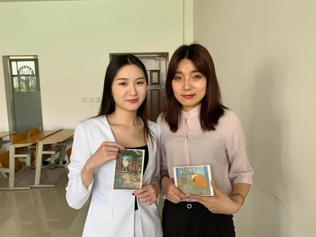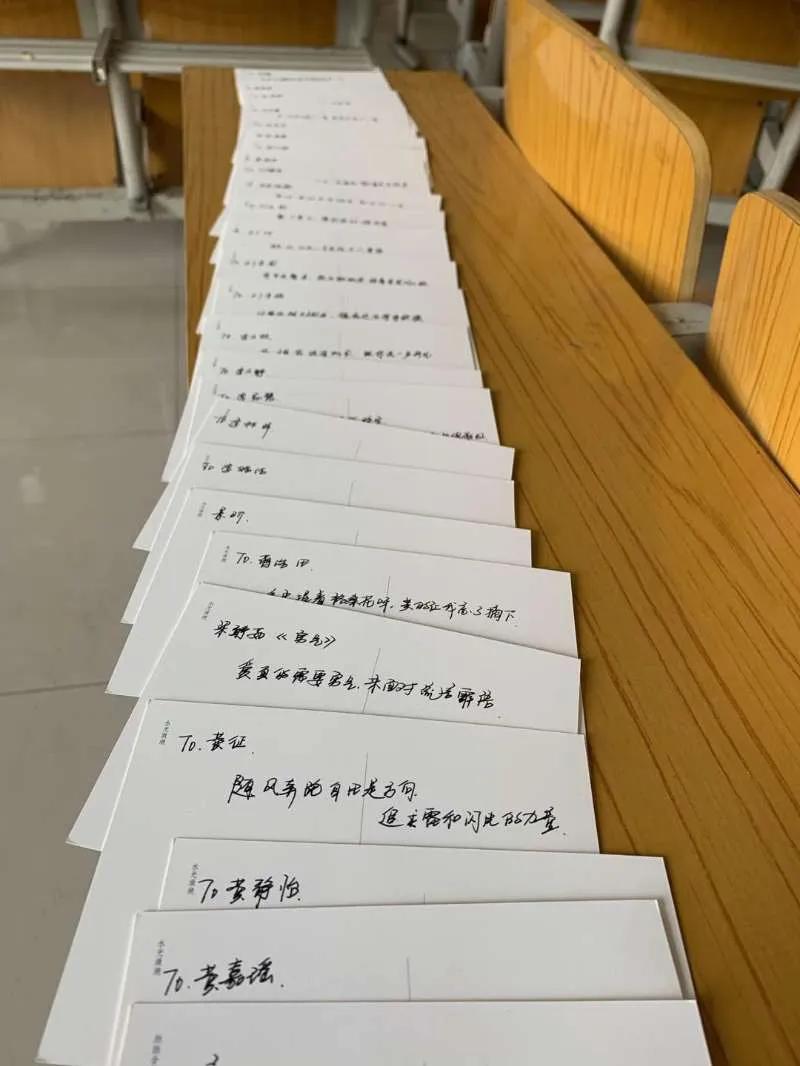 田老师将歌词写在明信片上