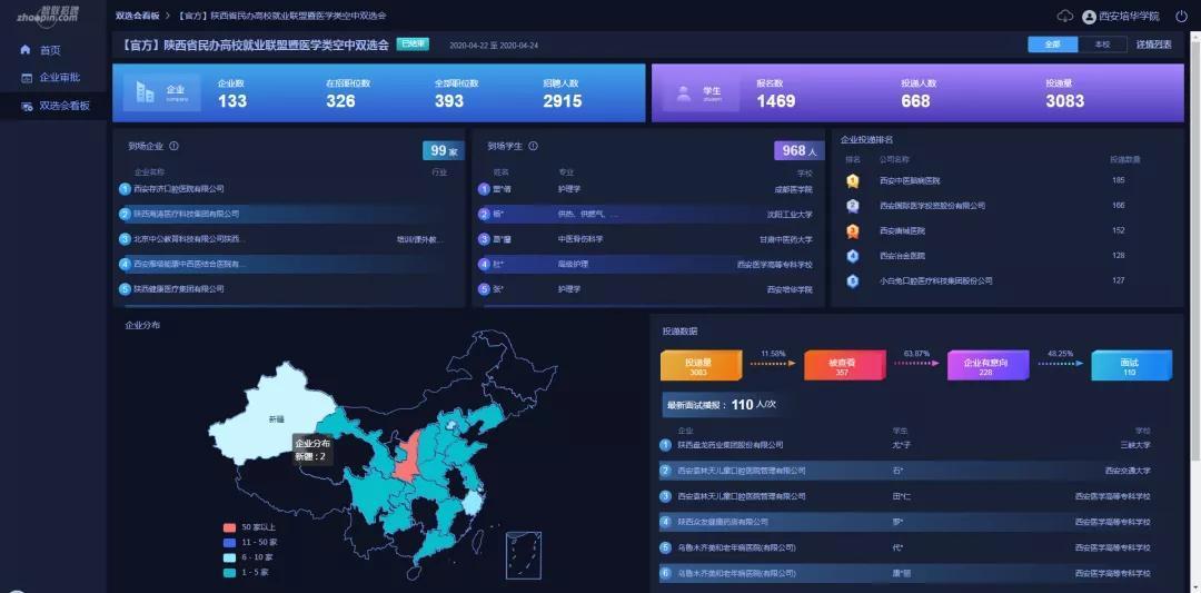 空中双选不断线,为毕业生择业提供充分保障。针对疫情,学校深挖细研招聘资源,继续加大政校企联系合作力度,形成了“线上+线下”相结合、“大型综合类+中型行业类+小型企业宣讲”相结合、全方位覆盖的校园招聘形式。截至目前,学校先后举办了 7 场大型综合类及行业性空中双选会、1 场校友企业专场网络视频招聘会、牵头举办3场大型民办高校就业联盟综合类、医学类空中双选会和 43 场空中专场宣讲会,先后共邀请 2126 家企业参会,提供就业岗位 127119 个,人均就业岗位数为 21.31 个。