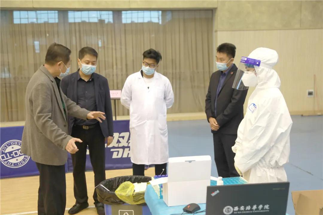下午,陕西省第五人民医院院长高碧奇来我校指导复学疫情防控工作,对学校的核酸检测、发热门诊、防疫消杀、物资储备、应急处置等方面进行技术指导。