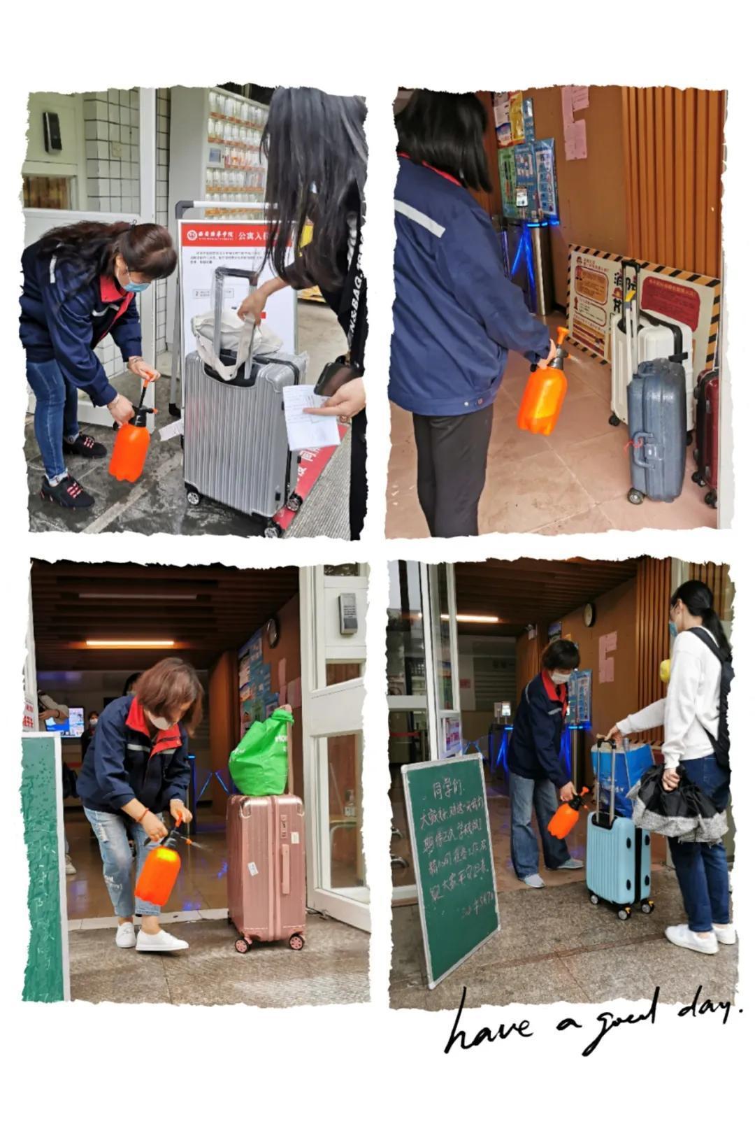 经过登记、行李箱消杀毒