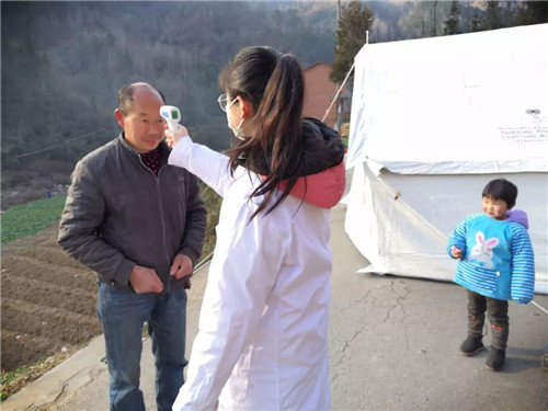 医学院彭洁洁是在陕西省安康市汉阴县铁佛寺镇铜钱村做防疫志愿者,负责本村路口测量温度登记,并向老人,幼儿讲解新型冠状肺炎病毒的防护措施和注意事项。