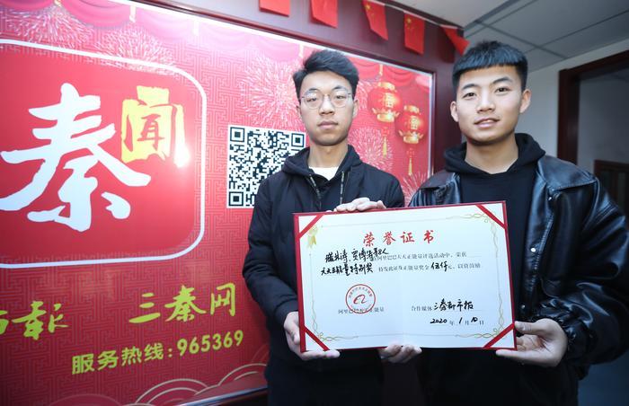 由于已是寒假,同去参加本次公益行动的部分同学已经回家。昨天下午,作为代表拿到获奖证书,两名“95后”大男孩特别开心。