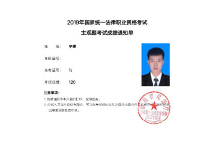 四年的法学专业学习使我看待问题分析问题的能力有了很大的进步和提升,感谢老师同学的鼓励与支持。通过法律职业资格考试仅仅是成为法律人的第一步,愿在今后的职业生涯中,做一个有温度的法律人!