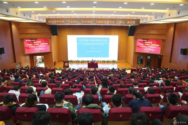 好旺传媒网讯: 11月21日,西安培华学院“不忘初心、牢记使命”主题教育报告会在图书馆报告厅召开,邀请到中国社会科学院、中国历史研究院,古代史研究所清史研究室副主任,研究员、创新工程首席专家鱼宏亮,来校作《从西学东渐到一带一路:中国的现代化之路》专题报告。党委书记胡俊生,党委副书记姚文静,校党委委员,各二级学院党委书记、副书记,党总支书记,直属党支部书记,党务干事及400多名师生党员代表参加了报告会,校党委书记胡俊生主持了会议。