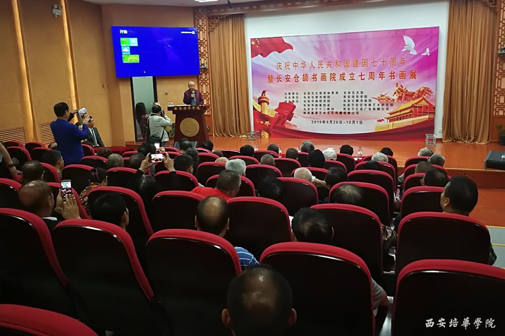 翰墨颂中华,书画绘盛世。9月26日,西安培华学院、长安仓颉书画院在汇知楼联合举办了“庆祝中华人民共和国成立70周年仓颉书画院文化艺术进校园书画展”,旨在用笔抒情,以书言志,抒发对党、对祖国、对家乡的热爱,歌颂祖国70年以来社会建设的伟大成就。