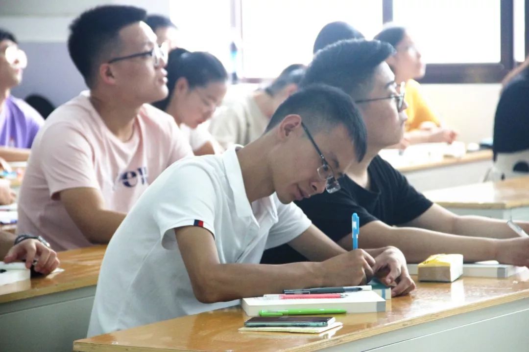 案例论证一个接一个,力求做到生动易懂。有的不慌不忙、娓娓相传,教室间满是与学生眼神的互动。老师们洪亮的声音贯穿教室,好像自带音效,就怕有同学不能听清误了课程,老师的用心不言而喻,台下的人儿怎么忍心辜负呢。学生们一改暑假在家懒散的样子,他们有的端坐在侧,安静地巴望着黑板方向。有的眉头轻锁,眼神紧随着授课教师而动,好像在思考着什么。也有的以笔指额,轻点思忖,熟悉的感觉又慢慢回来了……