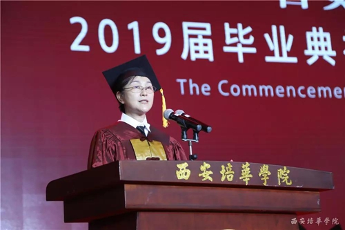 人文与国际教育学院常务副院长梁蕊副教授作为教师代表上台发言,她寄语毕业生在以后的人生路上,要富有激情,勇于探索,牢记培华“自强不息、开拓进取”的精神,不辜负父母,不辜负自己,不辜负老师和母校!