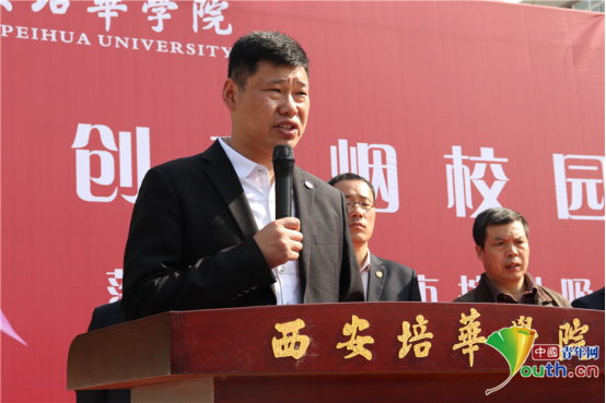 西安培华学院党委宣传部部长、新闻宣传主任柳雨,西安培华学院校医院院长李旭军,建筑与艺术设计学院党总支书记副院长权勇太,传媒学院党总支书记副院长江俊瑞,西安培华学院团委书记、学生服务中心副主任蔡亮,学生服务中心副主任张静远,建筑与艺术设计学院南斌红,以及各二级学院师生代表参加启动仪式。