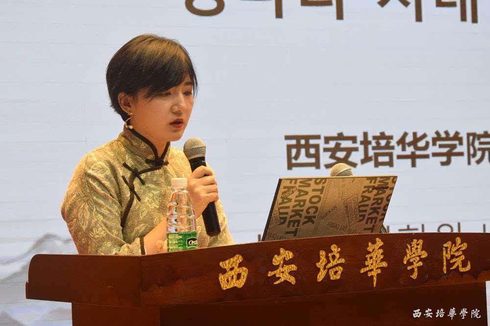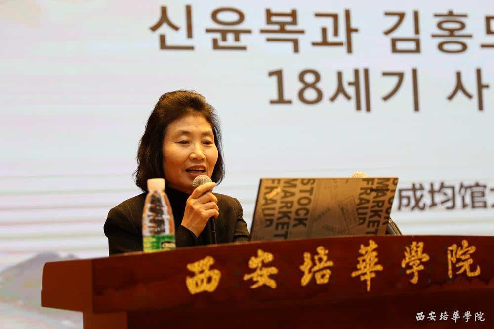 在随后进行的专家主题宣讲环节,韩服文化事业团朴民在代表作了以“鉴赏18世纪出土的两班服饰”为主题的报告。韩国成均馆大学赵又玄教授作了以“申润福和金洪道的风俗画-18世纪士大夫和妓女服饰”为主题的报告。西安培华学院李媛教授作了以“明朝时期服饰特点-汉族服饰的艳丽余晖”为主题的报告。西安培华学院牛菲教授作了以“明代传统服饰形象在当代影视剧中的再造研究”为主题的报告。专家教授们通过图片解析、实物展示等方式,从不同角度入手,全面深刻解析了不同历史时期传统服饰特点,带领在场观众充分领悟中韩传统服饰的魅力。