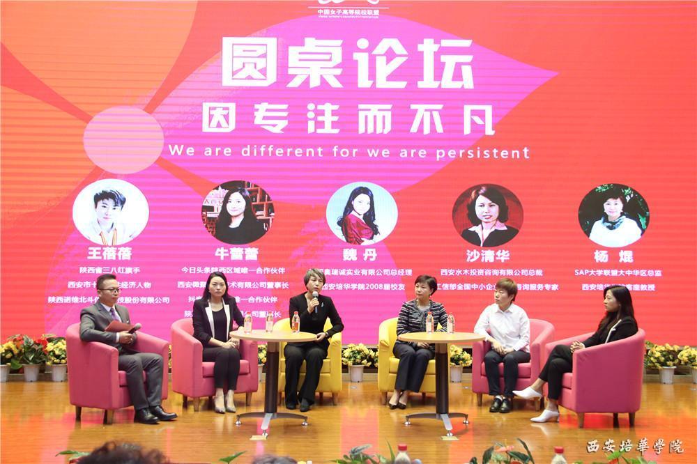 在22日举办的分论坛上, 5位女企业家围绕女大学生就业创业,分别作了“机遇与挑战”“成功与梦想”“视野与格局”“选择与坚持”等主题演讲。