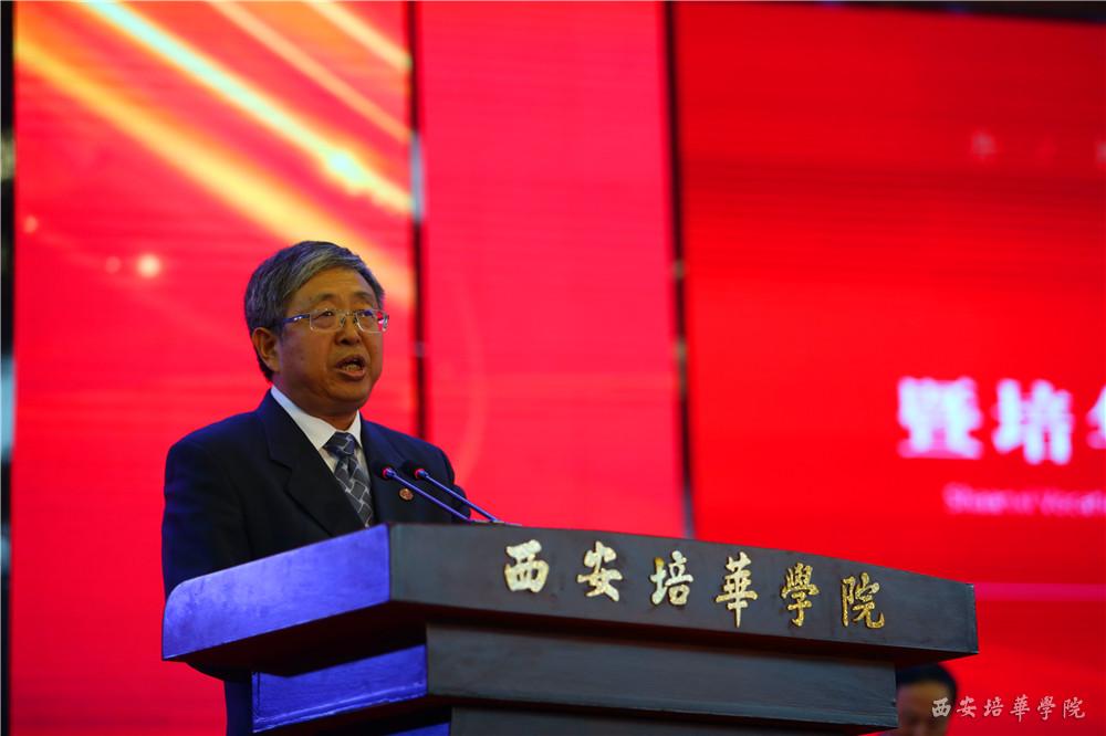 陕西省人民政府副秘书长高阳到会表示祝贺,他充分肯定了学校90年来发展取得的成果,学校作为全国最早的一批民办大学推动了陕西高等教育体制、机制创新,增强了陕西高等教育的生机和活力,为我省经济迅速发展以及社会文化事业的繁荣做出了历史性贡献。他希望,培华依托陕西省教育资源的优势,与其他院校进行深度合作,坚定信心,保持恒心;希望培华学子脚踏实地、坚持不懈、刻苦学习、勇于探索,成为可堪大用、能负重任的神禾之才。