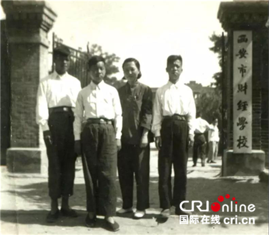 1953年,学校更名为西安市财经学校,学生在校门口留念