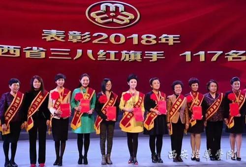 西安培华学院姚文静副校长由于在女性教育方面做出的突出贡献,而获得了陕西省2018年“三八红旗手”的荣誉称号,现场接受表彰。