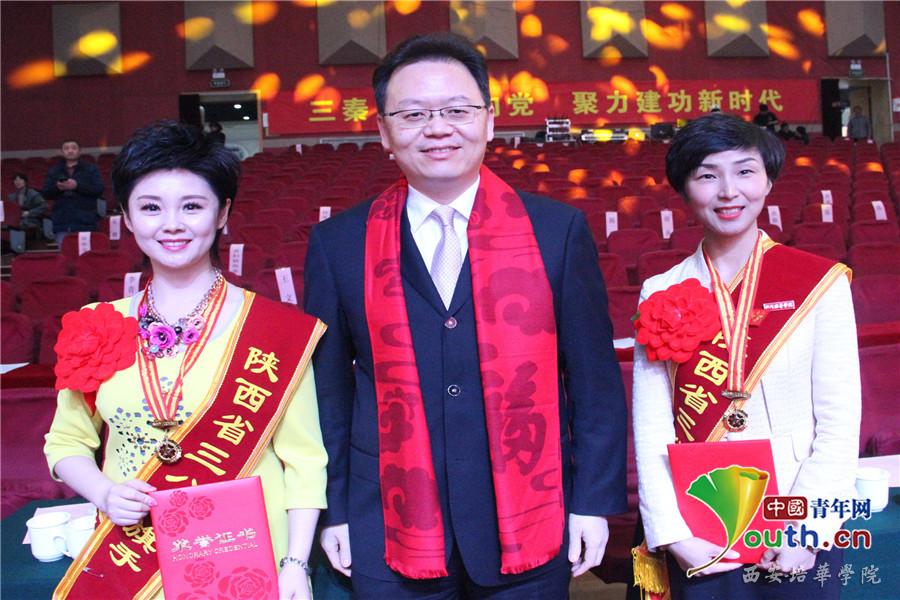 西安培华学院副校长姚文静(右一)荣获2018年陕西省“三八红旗手”荣誉称号。吕一供图