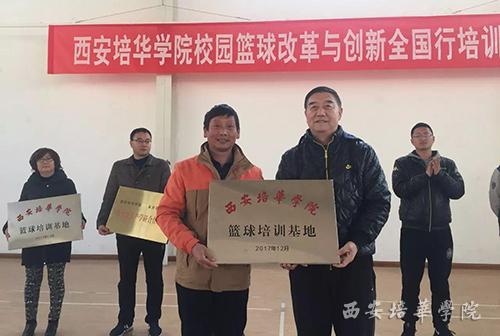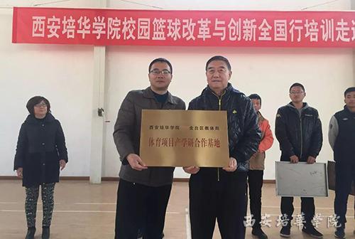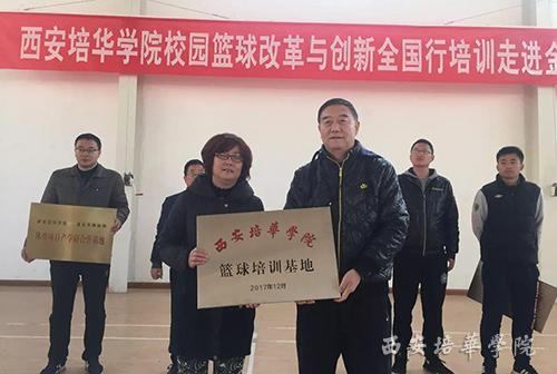 在金台区建立体育项目产学研基地。12月上旬,学校副校长徐国富一行赴金台区,举行“西安培华学院金台区教体局体育项目产学研基地”揭牌仪,同时在金台区新福园中学和西街小学建立“西安培华学院篮球培训基地”。揭牌后,徐国富教授对金台区体育教师和学生代表开展了相关培训活动。