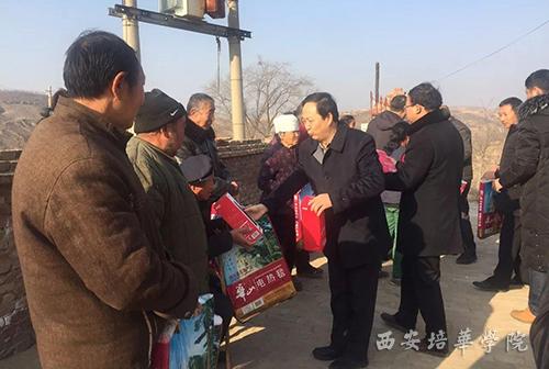校领导为子洲县瓜园则湾乡蒋兴庄村贫困户发放慰问品