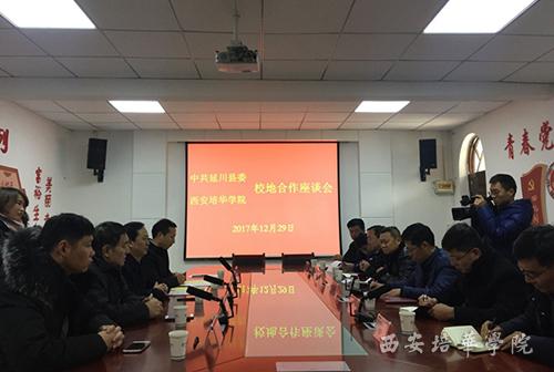 胡俊生书记与李钢部长共同为“西安培华学院大学生‘三观’教育基地”揭牌。仪式后,双方举行了简要座谈,座谈会上,胡俊生书记与李钢部长共同签订了《西安培华学院、中共延川县委关于在梁家河村建立大学生“三观”教育基地的合作协议》。会后,双方人员参观了梁家河知青旧居及文安驿古镇。