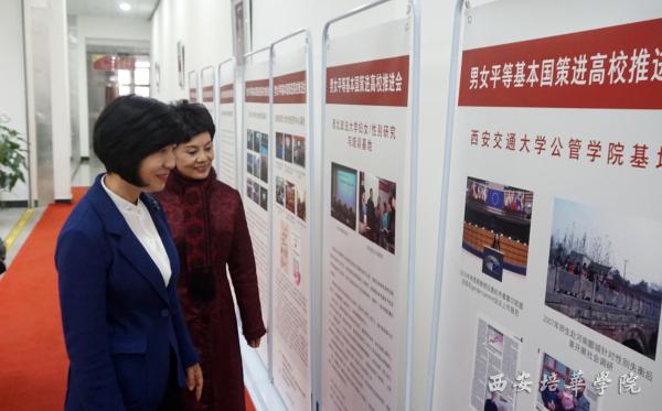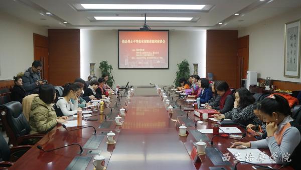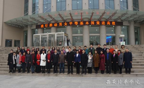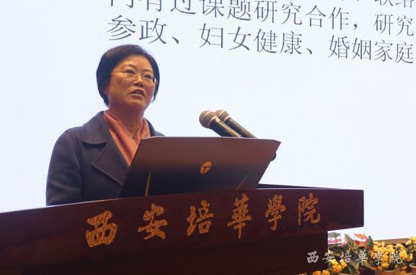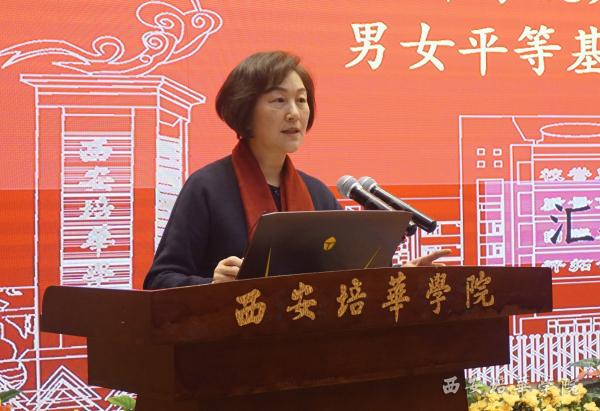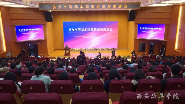 12月12日上午,男女平等基本国策进高校推进会在西安培华学院报告厅举行