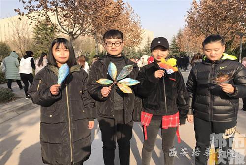 寒冬树叶飘落,色彩单调。但是西安培华学院的学生却用画笔在落叶上描绘出斑斓的世界。