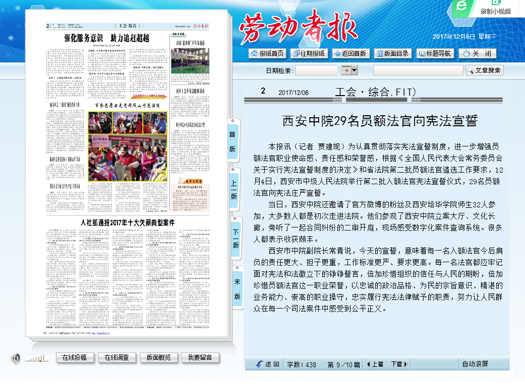劳动者报:西安中院29名员额法官向宪法宣誓