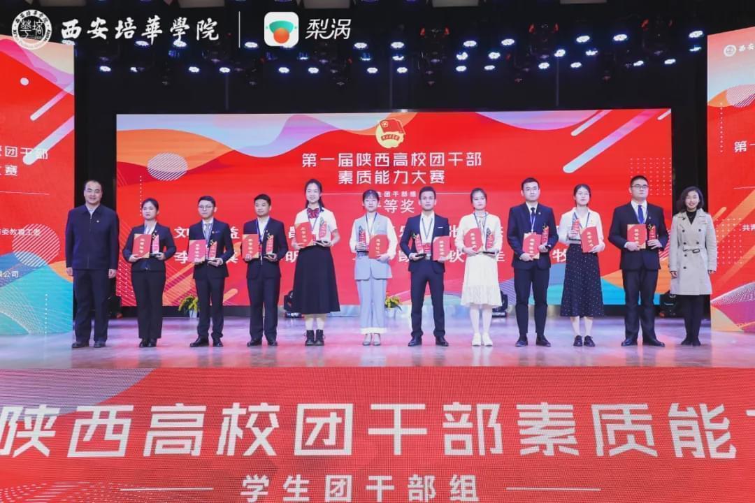 第一届陕西高校团干部素质能力大赛共设高校团委书记组、专职团干部组和学生团干部组。本次在西安培华学院举办的学生团干部组是大赛的收官之战。全省共有58所高校,106名学生团干部参赛,比赛项目分为理论知识测试、微团课讲授、案例分析3个环节,每个环节实行百分制,选手最终得分由3个环节得分经加权后计算总分。经过层层激烈的角逐,共产生一等奖10名,二等奖15名,三等奖20名,优秀奖35名,优秀组织单位10个。