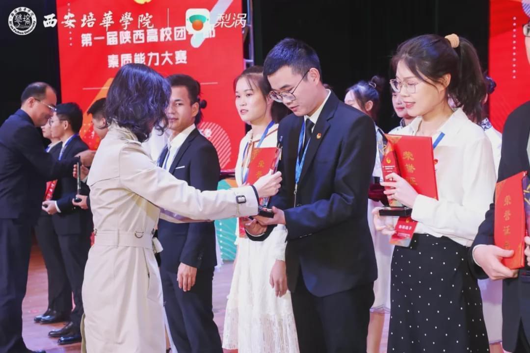 团陕西省委副书记徐永胜,西安培华学院党委副书记、副校长姚文静为一等奖获得者颁奖
