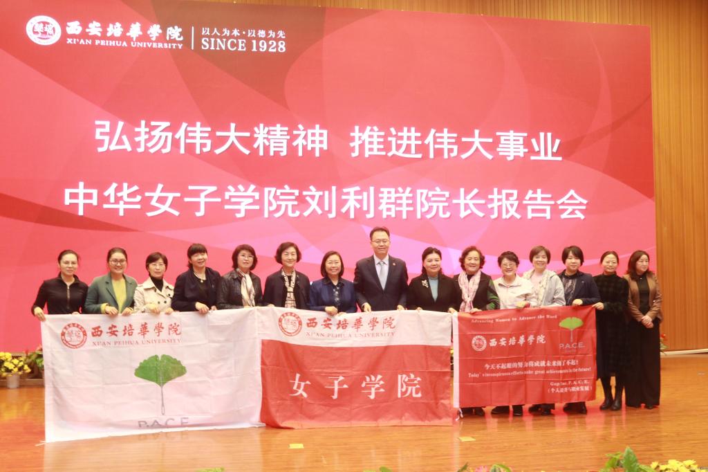 11月8日下午,中华女子学院院长、全国妇联干部培训学院院长、党委副书记刘利群教授以“弘扬伟大精神,推进伟大事业”为主题的报告会在西安培华学院图书馆报告厅召开。西安培华学院理事长姜波博士出席并讲话。西安培华学院学术委员会主席、学位评定委员会主席、副校长刘越莲教授主持报告会。西安培华学院女子学院、人文与国际教育学院、传媒学院400余名师生参会。
