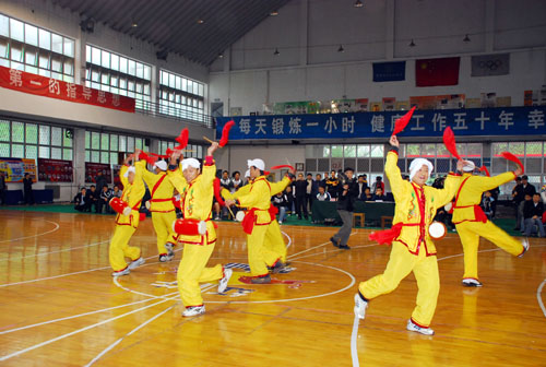 开幕式进行了健美操、武术以及陕北腰鼓表演后,由以原国家男篮主力王立彬带领的西北工业大学代表队和由陕西省副省长景俊海带领的高新管委会代表队进行了一场精彩激烈的表演赛。