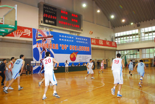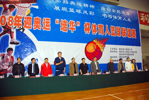4月12日上午9:00,2008年迎奥运“培华”杯体育人篮球联谊赛在西安电子科技大学体育中心拉开帷幕。
