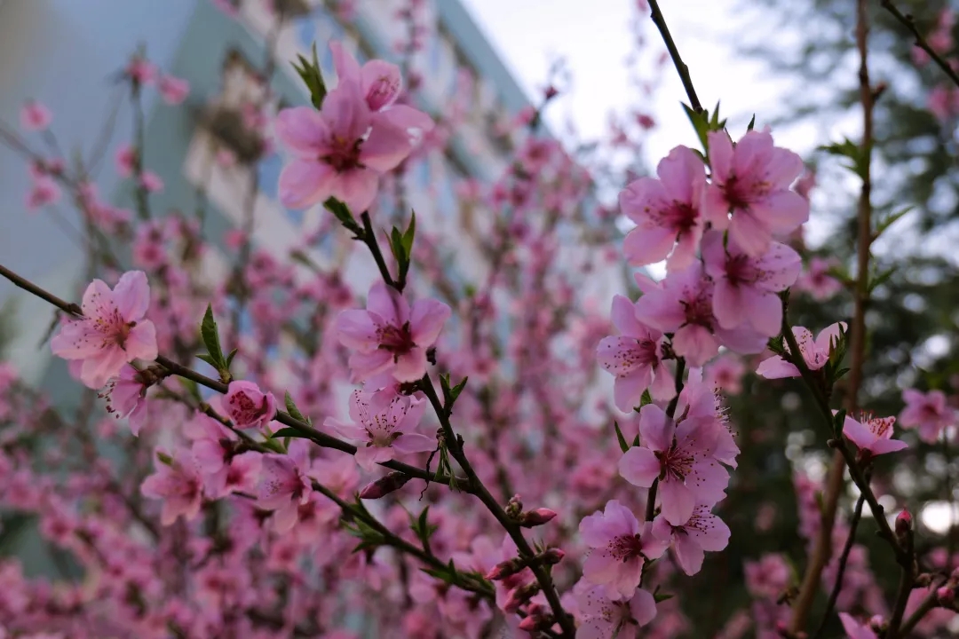 四月深涧底,春花方欲然。托起一片粉红色的天空。带给自己的是满眼的欢喜。不知是因为手指能“触碰”到花朵而心情愉悦。还是因为头顶一片美好而满心欢喜。