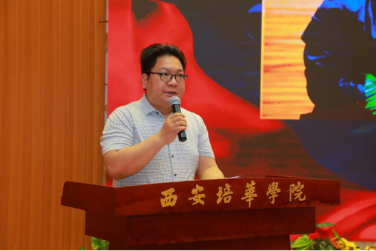 姜波理事长代表全体培华师生欢迎和感谢陕西摄影界的各位大咖们莅临学校参加这次影像展播活动的新闻发布仪式。他讲到,建党100周年是中国最重要的一件大事,今年也是培华的93周年,培华是一所历史悠久、具有红色基因传承的民办高校,从1938年培华成立第一个党支部,一路经历风风雨雨,学校先后举办了多次红色文化教育,党史学习教育、青年人的信仰教育、爱国主义教育等一系列活动。姜波理事长说到,照片和影像虽然没有声音,但它记录下很多历史难忘的事件,希望培华学子在迎接建党100周年的时候,在回顾过去、展望未来的中国发展上可以通过一系列的有意义的活动共同成长、共同见证建党100周年,希望影像展能够征集到更多的优秀作品,能展示给三秦父老,展示给当代大学生们,展示给全国人民,希望教育事业薪火相传。