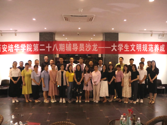 为切实加强辅导员队伍建设,探讨推动大学生文明行为养成的方式及方法,进一步促进辅导员间的交流与学习。2021年6月11日下午,由西安培华学院主办、建筑与艺术设计学院承办的第二十八期辅导员沙龙“大学生文明行为养成”在汇知楼培华美术馆举行。参加此次活动的嘉宾有党委学工部部长、学生服务中心主任蔡亮,党委学工部副部长、学生服务中心副主任姚斌,智能科学与信息工程学院党总支书记兼行政副院长南兵,开放教育学院党总支书记兼行政副院长罗永辉,体育学院党总支书记兼行政副院长马德厚,建筑与艺术设计学院党委书记兼行政副院长权勇太、党委副书记南斌红及各二级学院辅导员代表。