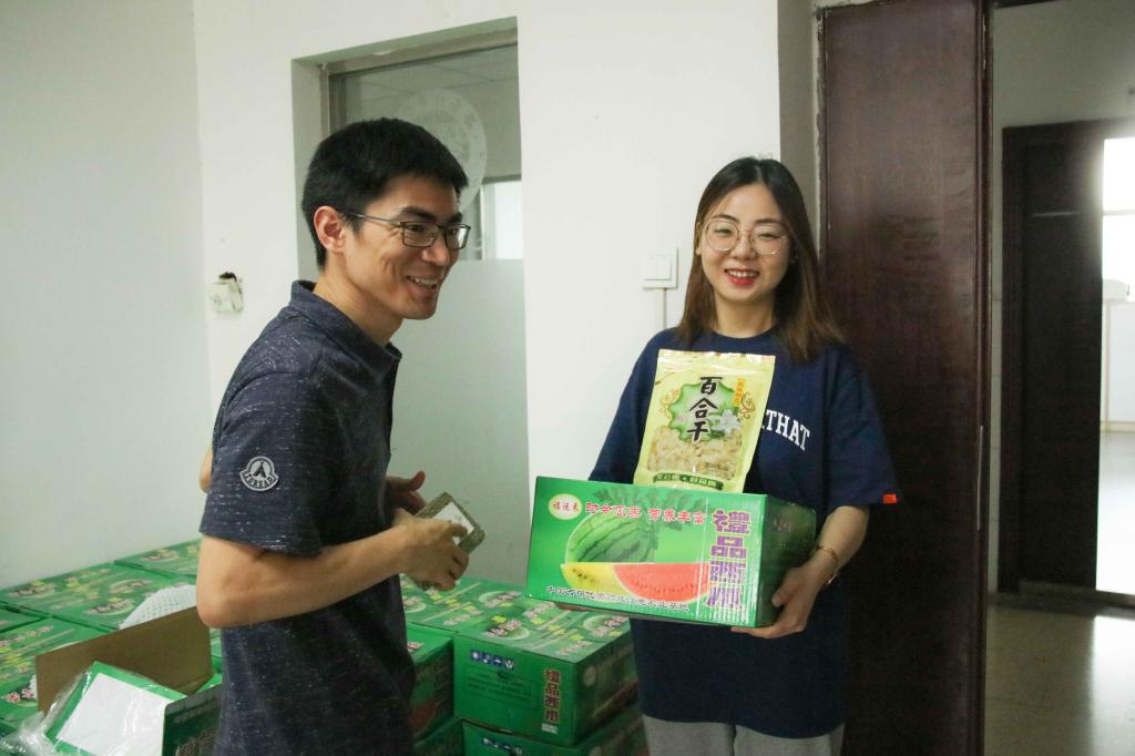 为积极响应省委教育工委“消费扶贫”有关精神,带动学校对口帮扶地区农特产品销售,助力乡村振兴。6月25日,学校工会为教职工统一购买了“清凉福利包”(含西瓜、绿豆、百合、薏米)1000余份,此次农产品来自于学校“双百工程”帮扶地区宝鸡市金台区,这也是学校消费扶贫工作的重要举措。