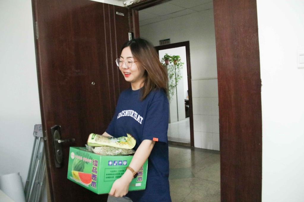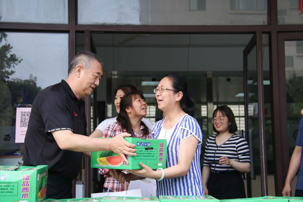 西安培华学院监事会、工会主席徐国富为教职工发放清凉礼包。