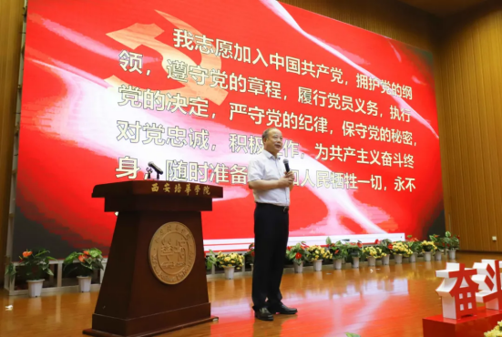 为庆祝中国共产党成立100周年,7月9日上午,西安培华学院学习贯彻习近平总书记“七一”重要讲话精神暨表彰大会召开。陕西省政协常委、致公党陕西省委会副主委、西安培华学院理事长姜波出席活动并讲话,学校党政领导班子成员,各基层党组织负责人,校工会委员会委员,各基层分会主席,各单位党务兼行政干事,受表彰的先进单位、优秀个人代表,参加宣誓的新党员代表以及师生党员代表参加了活动。