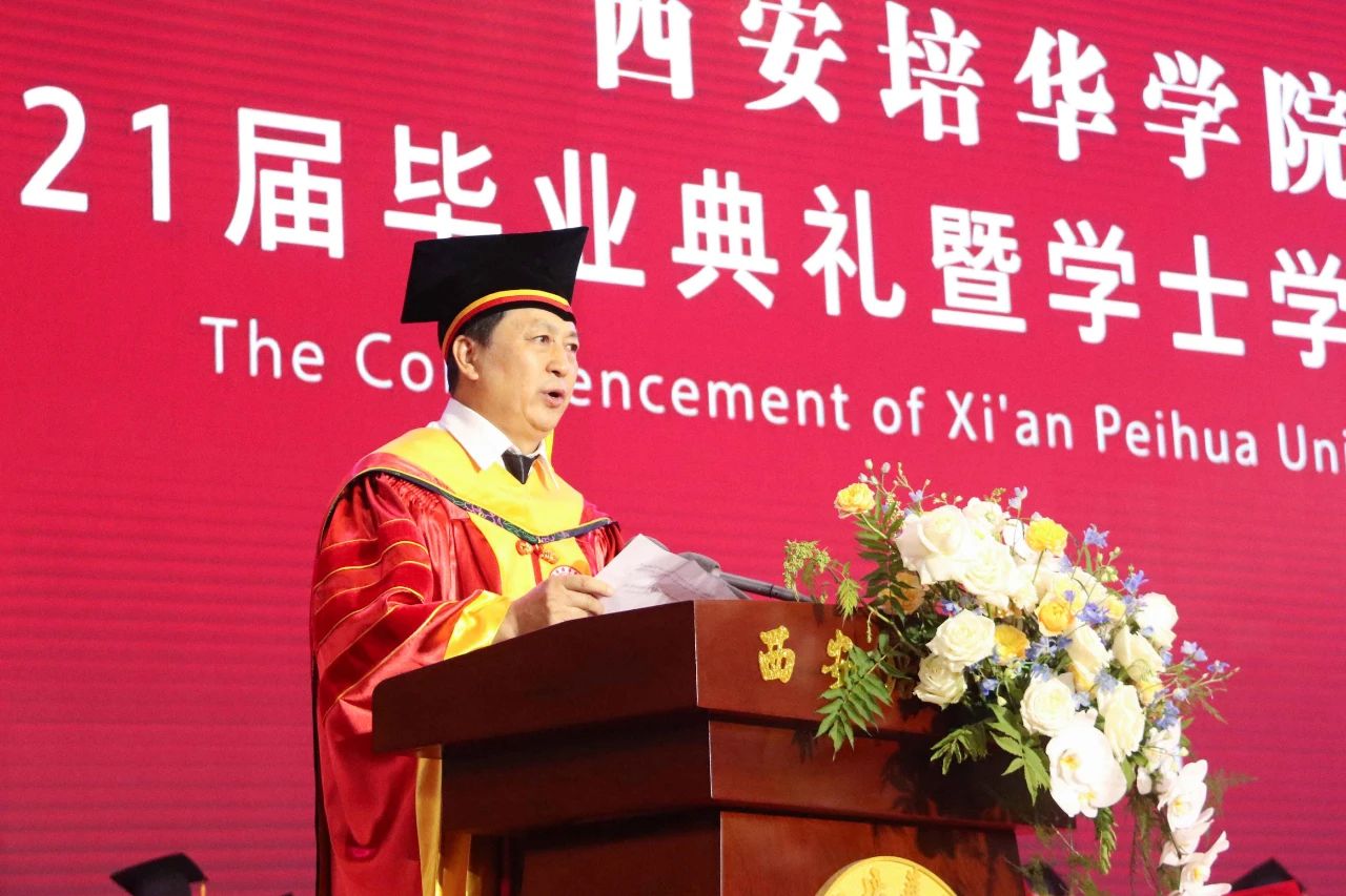 校长李映方教授宣读《西安培华学院关于2021届全日制普通本专科学生毕业(结业)的决定》