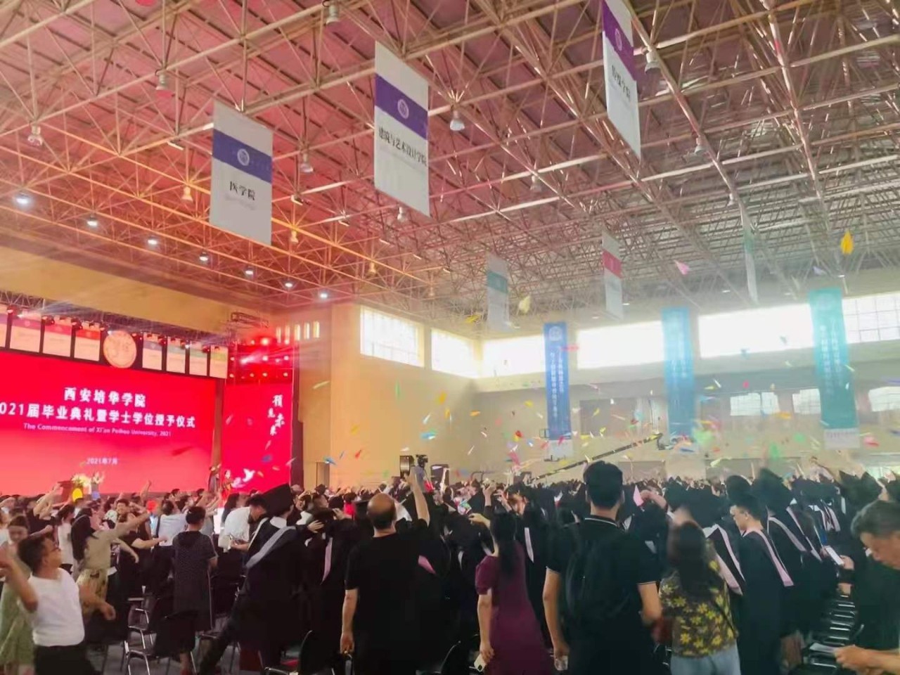 来时青春年少,去时繁花似锦。7月10日上午,西安培华学院在体育馆举行2021届毕业典礼暨学位授予仪式。全体校级领导、学位委员会委员、全体中层领导、教师代表、辅导员代表、毕业生家长代表、校友代表、2021届毕业生代表三千余人参加。