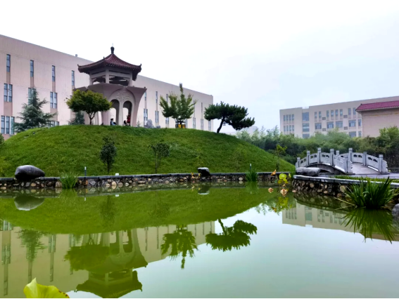 “湖光秋月两相和,潭面无风镜未磨。”远眺恒友楼、维之园,倒影中明快的颜色让人心旷神怡。