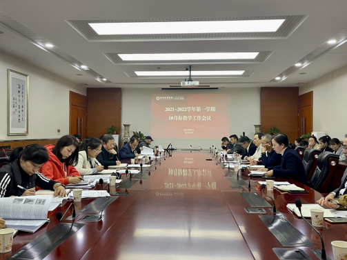 为全面部署本学期教学工作,保障本科教学正常秩序,10月11日下午,教务管理中心在第一会议室组织召开本学期10月份教学工作会议。常务副校长胡俊生、教务管理中心主任铁卫、各教学单位主管教学副院长,人力资源中心、学生服务中心、后勤服务中心主要负责人和发展规划与质量建设中心、教务管理中心主管以上人员参加了本次会议,会议由铁卫主持。
