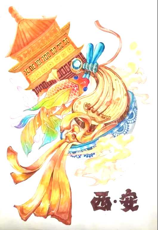 环境设计专业刘子涵、尹欣然:大学来到了西安,西安便成为了我们的第二个家。我爱上了这座城市的古朴庄重,也喜欢上了这座城的车水马龙和灯火阑珊。一个肉夹馍,一碗油泼面便道出了我们对这个城市所有的爱。西安这座城,经历了岁月的沧桑更迭,在时代变迁中依旧永垂不朽。