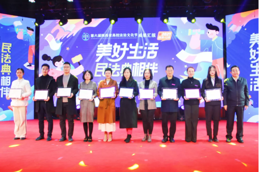 本届法治文化节以“美好生活·民法典相伴”为主题,采用线上和线下并行的方式,充分运用新媒体新技术,深入开展了多个法治宣传和法治文化活动,活动现场对高校“十佳创新普法活动”、“五个一”优秀作品、“法典先锋”冲关答题挑战赛获奖选手、第六届陕西省高校法治文化节优秀组织单位进行了表彰。