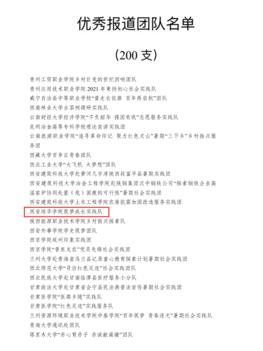 西安培华学院团委获2021年“镜头中的三下乡”优秀组织单位荣誉称号