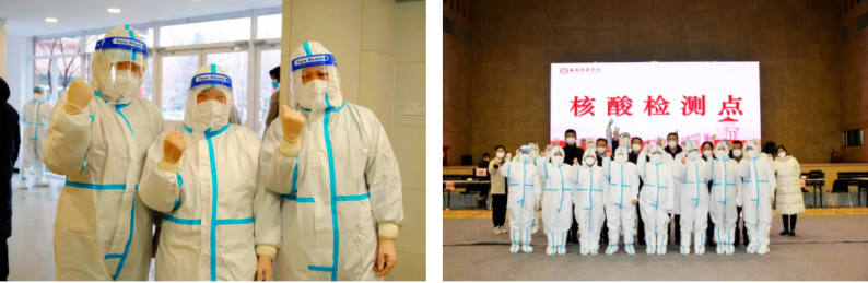 学校支持并鼓励青年学生加入防疫队伍,用专业所学彰显青年担当,在确保学生人身健康安全的前提下,让每个学生在疫情防控中贡献光和热。截至目前,学校现有护理学专业10个班的46名学生在空军军医大学唐都医院进行校外实习,21名学生在西安市大兴医院、空军九八六医院、西安市红会医院、陕西省肿瘤医院等医院进行实习。他们和医护人员一道奋战在抗疫一线,共同戍卫我们的城市。