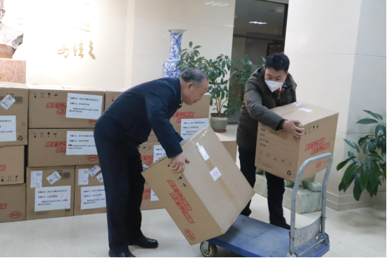 1月15日,深圳市天翼咨询有限公司涂艳女士通过西安培华学院监事会主席、工会主席徐国富教授向西安培华学院捐赠一次性医用口罩20000只,N95口罩10400只,助力学校防疫工作。学校党委书记罗新远,校办主任李健,党委宣传部部长柳雨,纪委副书记吉小平等接受了捐赠。