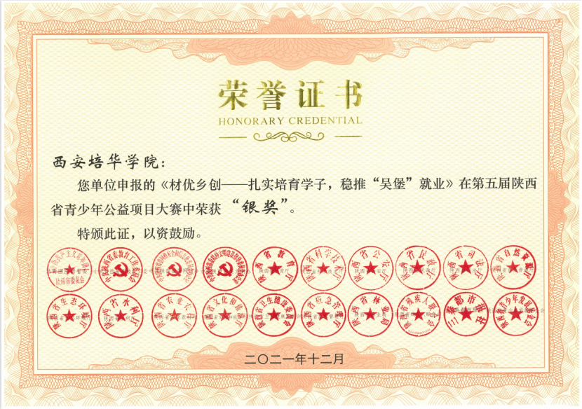 近日,第五届陕西省青少年公益项目大赛比赛结果揭晓。根据陕团联发《共青团陕西省委陕西省委教育工委 陕西省委网信办等关于第五届陕西省青少年公益项目大赛获奖情况的通报》,由学校推荐的《材优乡创——扎实培育学子,稳推“吴堡就业”》《以青春之名,陪你健康成长》荣获银奖,《博爱三秦,“救”在“益”起》《与你同行,守护未来》荣获铜奖,学校团委荣获本届大赛优秀组织奖。
