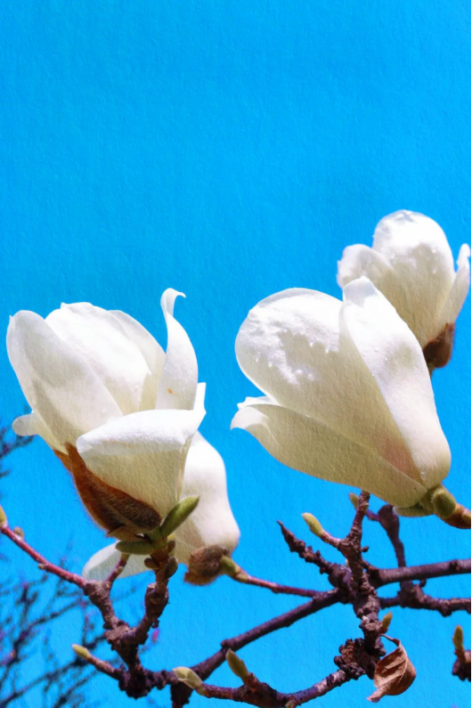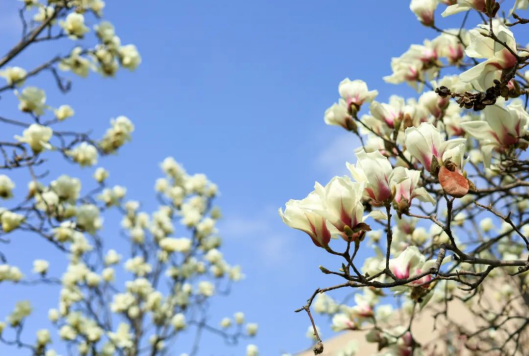玉兰花开放,告别冬天的落日,挥手旧时的寒霜,义无反顾绽开不带片刻彷徨。