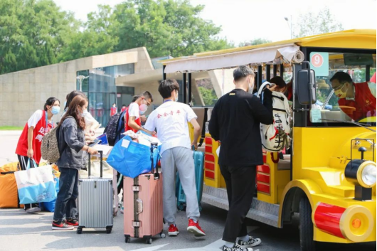 红马甲、小推车、迎新牌、小火车,志愿者的身影,忙碌穿梭在校园的各个地方,全校上下齐动员,热情周到地迎接新同学的到来。