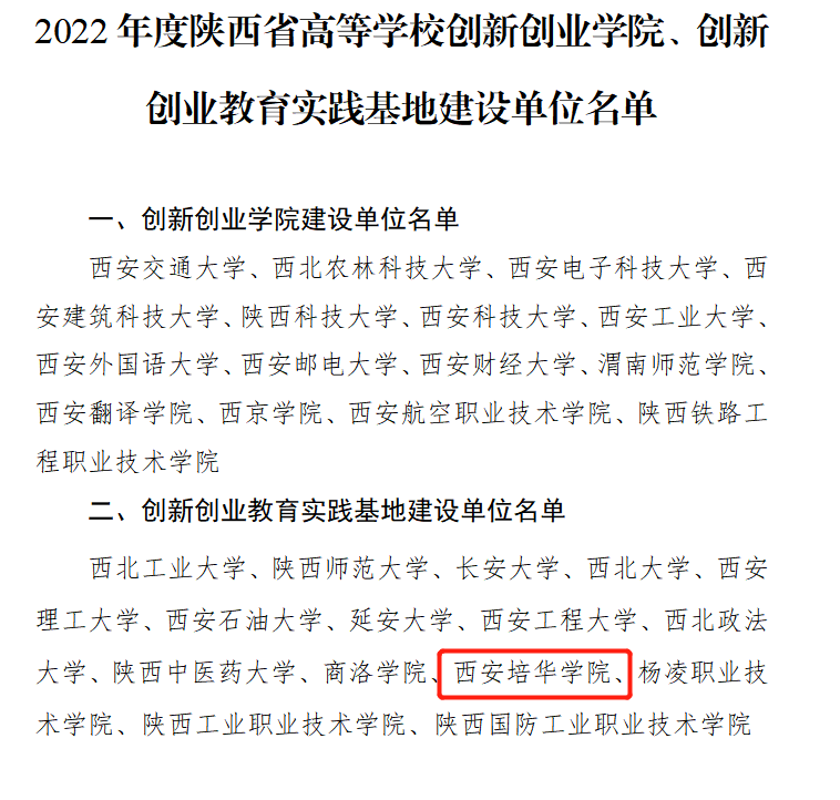 近日,陕西省教育厅办公室发布《关于公布陕西省高等学校创新创业学院、创新创业教育实践基地建设名单及考核办法的通知》陕教高办〔2022〕36 号,我校创客中心通过自主申报,历经材料审查、专家评审及公示阶段,成功入选省级创新创业教育实践基地建设单位名单,取得创新创业平台建设成效的重要突破。
