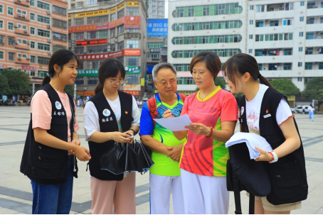 ——做调研访谈,体会电商直播带货。以茶待客是传承几千年的礼仪,“青年观察家”们结合专业基础及特长,走访紫阳县多个茶叶交易市场、电商服务中心、文化广场和附近村镇,与普通市民和茶商进行了深入的交流和调研,了解当地茶产营销、茶文化展示、茶生活体验等情况,发放问卷2000余份,访谈百余人,通过调研访谈,得知,紫阳特色产业发展迅速,人民生活水平逐渐提高,幸福感逐渐增强。“青年观察家”们在工作人员的指导下体验了直播带货,以大学生视角对紫阳特色富硒茶、紫阳特色农产品进行线上宣传推广,完成了实践调研任务,得到了当地政府、市民、茶商的一致好评。