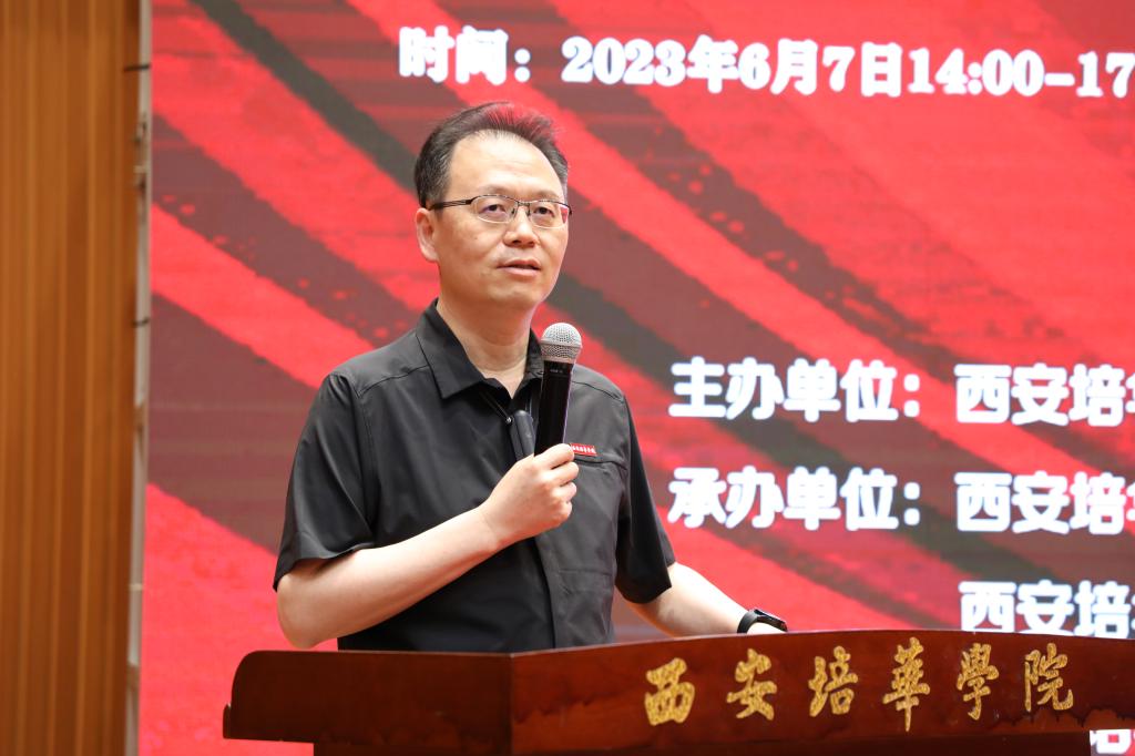 会上,陕西商务厅商贸服务处副处长赵建明、中国青年报陕西记者站站长黄博、西安培华学院理事长姜波、西安培华学院播音与主持艺术系学科带头人周东华相继致辞,纷纷从各自站位阐释了全媒体人才培养的路径与经验。